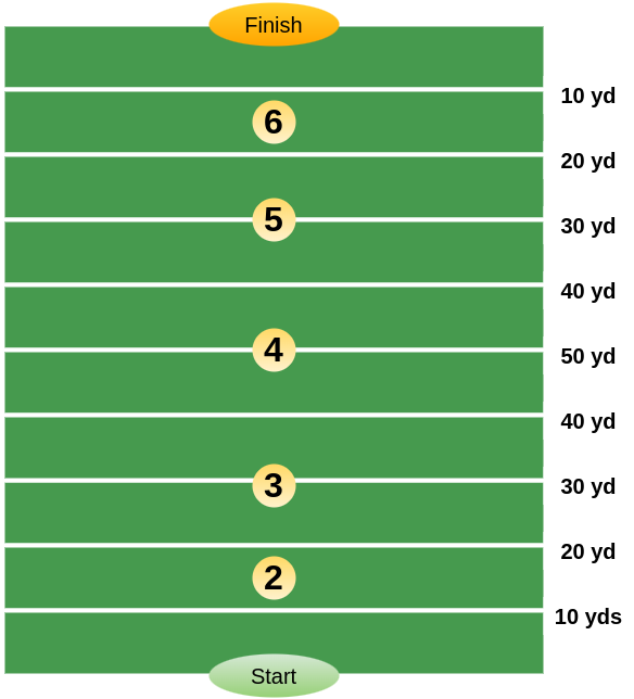 There are 5 exchange zones. Each exchange zone consists of the area between the yard line and a cone one yard from the line. All sack exchanges must be made within this exchange zone. Only the 2 team members involved with the exchange may assist each other with the exchange. After each team member concludes their portion of the sack race, they must remain at the site of their exchange -vs.- traveling down field with the individual in the sack to the finish line. This eliminates a large congregation at the finish line making it easier for the timers. Time stops when the last person’s entire body crosses the finish line.